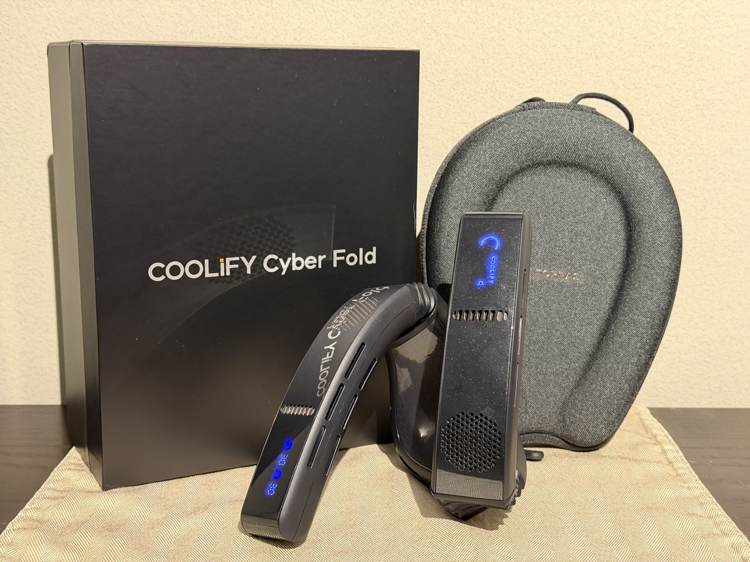 The Cyber Fold is the most luxurious neck fan we’ve tested. It feels like the ~$50 price premium over the Ranvoo AICE Lite or Coolify 2s is justified. The quality perception starts with the very nice packaging, which is worthy of a corporate gift. The included travel case is genuinely useful, and the screens are nice.