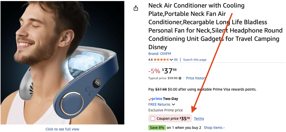 - OVIFM Neck Fan with Cooling Plate (5/10 – $39) – Basic Cooling Neck Fan